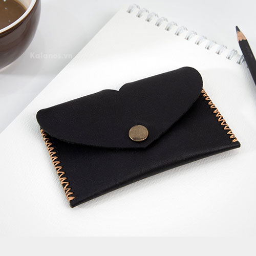 ✔️Tên sản phẩm: Ví nữ mini da bò cao cấp handmade màu đen Kalanos KMKN60-Den, nắp gập cách điệu hình trài tim trẻ trung Kalanos – Mã số: KMKN60-Den